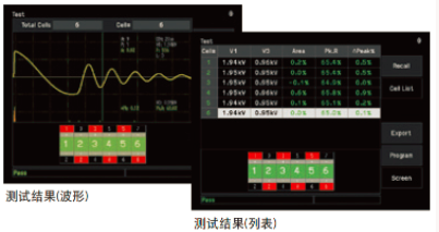19311 Series具有崩潰電壓分析功能,可設定起始電壓與結束電壓,利用電壓爬升過程偵測波形面積比(Area) 、二階微分偵測(Laplacian) 及波峰比(Peak Ratio)是否超過設定的限制,測試電池芯最大可承受的脈沖測試電壓。研究人員可利用此功能對鉛酸電池芯進行分析與研究,及制定制造生產時脈沖測試的檢測電壓。