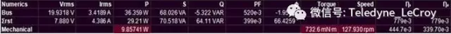 機械波形是來自Magtrol測功機(機械象限的上半部分)的模擬轉矩和速度信號和來自電動機驅動電路的霍爾傳感器信號。利用這些采集的信號,我們計算出下面平均值數值表中顯示的的平均速度和扭矩值(見插圖)。